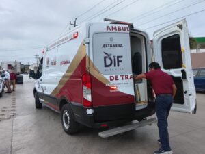 Con una grave lesión en su pie derecho resultó un adulto mayor, al ser atropellado esta mañana por un tractocamión, siendo trasladado de urgencia a un hospital por personal del Sistema DIF Altamira.
