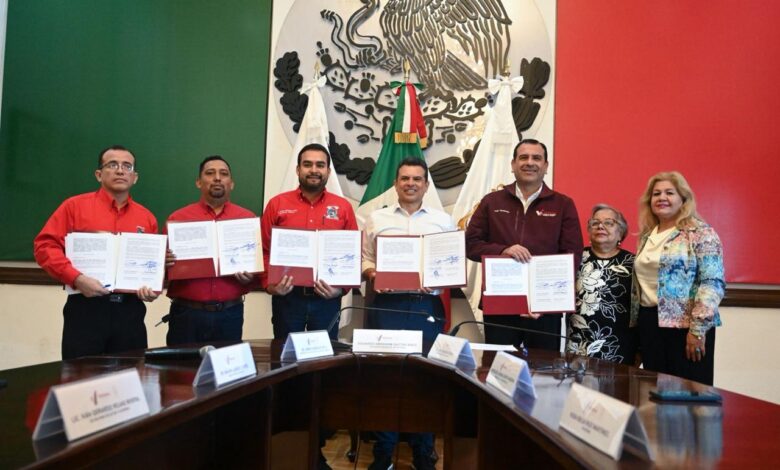 Ciudad Victoria, Tamaulipas febrero 06. – Como parte de la estrategia de facilitar el pago de impuestos, derechos y contribuciones municipales, el gobierno de Victoria firmó convenio de colaboración con la Sección X del Sindicato del Instituto Mexicano del Seguro Social.