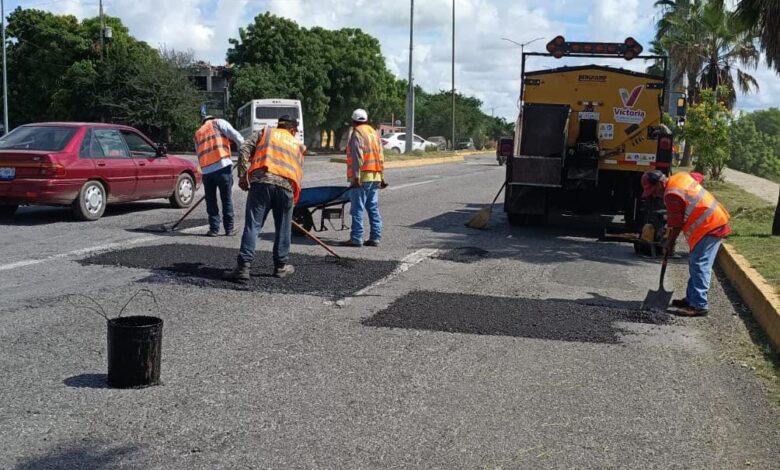 Ciudad Victoria, Tamaulipas, octubre 15. – Con trabajos de bacheo a doble turno, la Secretaría de Obras Públicas del gobierno de Victoria, avanzó en la recuperación de vialidades dañadas por las recientes lluvias en la ciudad.