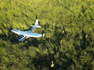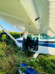 Aldama, Tamaulipas. – Una avioneta con matrícula XB-BCW, que realizaba un vuelo procedente de McAllen, Texas, con destino a Tampico, realizó un aterrizaje de emergencia entre la maleza, a la altura de la carretera Aldama–Tampico.