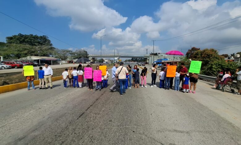 Para exigir la inmediata apertura de la escuela primaria “Emiliano Zapata” que desde hace dos semanas permanece cerrada, padres de familia con algunos de sus hijos bloquearon un tramo de la carretera Tampico-Mante a la altura del puente “Las Piñas” en el municipio de Altamira.