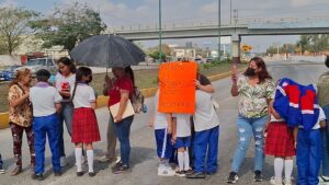 Antes del mediodía los manifestantes se apropiaron de los carriles que conducen rumbo al norte, señalando que la escuela cerró debido a un conflicto laboral entre directivos, maestros y jefe del sector, en donde Los afectados como siempre ocurre han sido los niños que no han tenido clases presenciales.