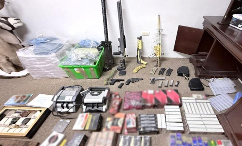 Durante la intervención se aseguró una ametralladora, tres armas largas, tres armas cortas, cartuchos útiles y 12 cargadores abastecidos.