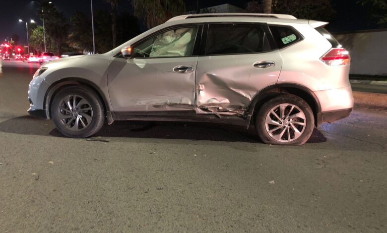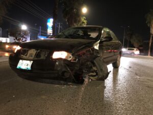 Ciudad Victoria, Tamaulipas.– Un accidente vehicular se registró la noche del martes sobre la avenida José Sulaimán, a la altura del Hotel Flamingos, donde se vieron involucrados un automóvil Nissan Sentra y una camioneta Nissan Rogue.