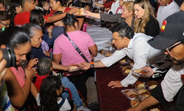 En compañía de la directora del plantel, Adriana Lizbeth Cerda Lerma, y presidentes de cámaras empresariales, compartieron el tradicional pan de la temporada entre sonrisas, abrazos y alegría de niños, jóvenes y adultos que se dieron cita en la explanada del Paseo Méndez.