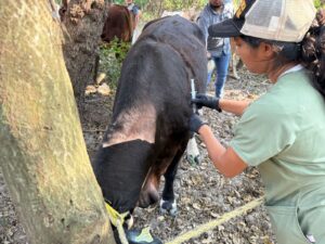 Profilaxis y tratamiento metafiláctico: Se inició la administración masiva de ivermectina al 1% al 100% de la población bovina del hato afectado y predios colindantes, con el objetivo de interrumpir el ciclo biológico del parásito y reducir la susceptibilidad del ganado.