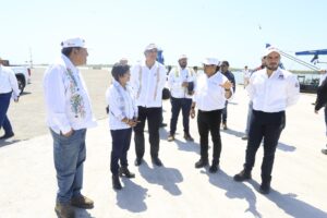 El gobernador y la titular de la Sedatu, junto con el director general de la Comisión Nacional de Vivienda, Rodrigo Chávez Contreras llegaron hasta la zona de las escolleras, donde apreciaron el canal de navegación y conocieron la zona para el desarrollo de la Terminal de Almacenamiento de Pemex, que se convertiría en la más grande e importante del noreste de México.