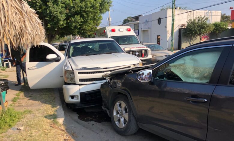 Cuatro vehículos y un negocio dañados en carambola en el 28 Juárez; tres lesionados