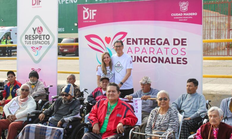 Asimismo, el Sistema DIF Ciudad Madero realizó la entrega simbólica de sillas de ruedas, bastones y andadores a beneficiarios, con el respaldo solidario de hoteles y comercios de la ciudad.
