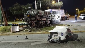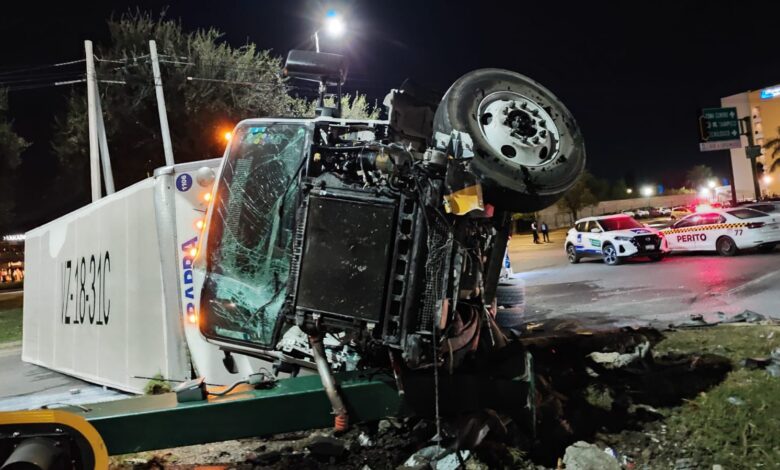 Ebrio provoca fuerte choque y vuelca camión de abarrotes en Ciudad Victoria