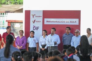 Previo al corte del listón inaugural, Gattás Báez destacó que, junto a su esposa Lucy de Gattás, trabaja hombro a hombro con el gobernador Américo Villarreal Anaya, para “fortalecer la infraestructura educativa y que Victoria tenga escuelas más fuertes y mejor equipadas”.