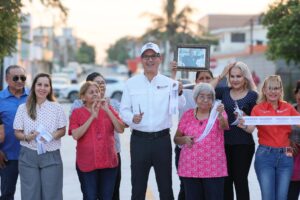 Con una inversión cercana a los 2.8 millones de pesos, el presidente municipal Erasmo González Robledo, acompañado de su esposa Dunia Marín Acuña, presidenta del sistema DIF, así como de síndicos y regidores, inauguró una nueva calle de concreto hidráulico en la colonia Hidalgo Oriente. Durante el evento, las vecinas y vecinos recibieron el reconocimiento de las autoridades municipales por su confianza en el gobierno de la ciudad, destacando la importancia del trabajo en equipo para mejorar la infraestructura vial.