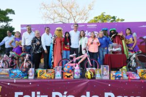 Asimismo, destacó la presencia de la presidenta del Sistema DIF Ciudad Madero, Dunia Marón Acuña, a quien el presidente municipal reconoció por su labor social en favor de las familias maderenses. La rifa inició con una bicicleta para niña, seguida por premios para niños, generando emoción entre los participantes.