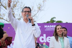 En su mensaje inicial, la primera autoridad saludó de manera cercana a niñas, niños y padres de familia, generando un ambiente de confianza y alegría. “Me da mucho gusto ver a las familias maderenses aquí reunidas en este sector, Benito Juárez, pegado aquí a la Laguna Nuevo Amanecer”, expresó ante decenas de asistentes, invitando a los menores a participar activamente en la celebración.