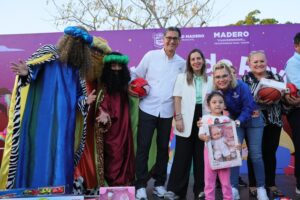 Con entusiasmo y la alegría característica del Día de Reyes, las familias de Ciudad Madero se reunieron en el parque Nuevo Amanecer, ubicado en el sector Benito Juárez, para disfrutar de las celebraciones organizadas para cientos de niñas y niños. Este evento fue encabezado por el presidente municipal Erasmo González Robledo y su esposa Dunia Marón Acuña, presidenta del sistema DIF, quienes reafirmaron la importancia de mantener vivas estas tradiciones y de fomentar la convivencia familiar.