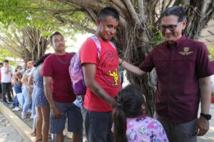 Cada persona logró apoyos de paquetes alimentarios como medias piezas de pollo, verduras, medias tapas de huevo, productos de limpieza, abarrotes, que vienen a cubrir una necesidad básica, especialmente para familias vulnerables. Se sumaron a esta jornada Bienestar Federal, Comisión Federal de Electricidad, Financiera del Bienestar; Guardia Nacional y Estatal, Mesa de Construcción de Paz, Becas Bienestar; la Secretaría de Salud a través del IMSS-BIENESTAR; ITEA, ITAVU, Bienestar estatal, Oficina Fiscal, Registro Civil, como cada una de las direcciones generales del gobierno de la ciudad.