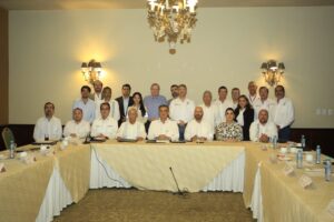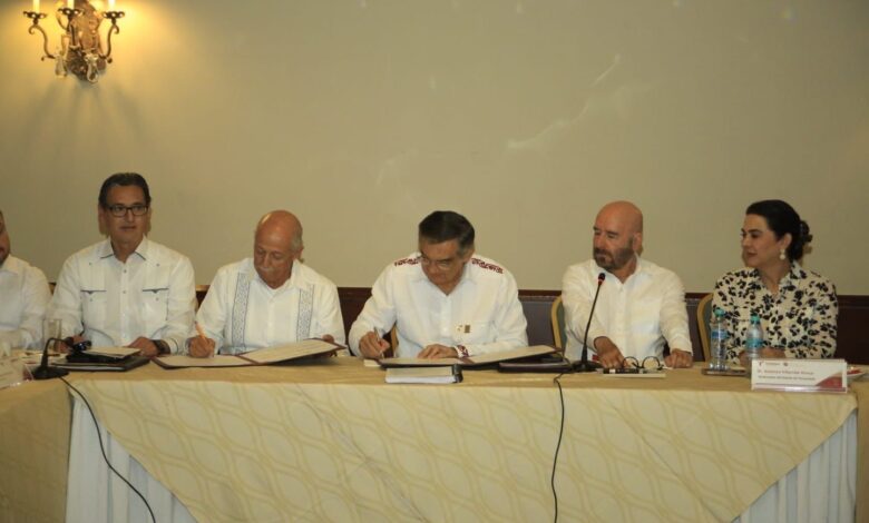 Durante la reunión de trabajo en el Club de Industriales de Tampico, junto con el secretario de Recursos Hidráulicos, Raúl Quiroga; el secretario general de Gobierno, Héctor Joel Villegas; la presidenta municipal de Tampico, Mónica Villarreal Anaya, y el alcalde de Madero, Erasmo González Robledo, Villarreal Anaya firmó el convenio específico de colaboración entre el Gobierno de Tamaulipas y la Asociación de Industriales del Sur de Tamaulipas.