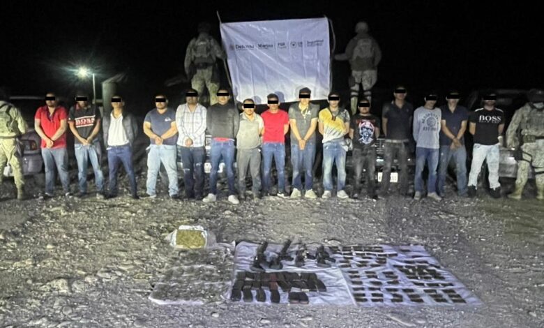 Los vinculados son Billy “H”, Pedro “A”, Héctor “R”, Jesús “O”, Jesús “P”, Ricardo “G”, Jesús “R”, Óscar “R”, Alberto “J”, Francisco “V”, Juan “H”, Melecio “R”, Guillermo “G”, Ángel “C” y Tirso “V”, a quienes se les imputan los delitos de portación de armas de fuego y posesión de cartuchos y cargadores de uso exclusivo de las Fuerzas Armadas, así como posesión de marihuana con fines de venta.
