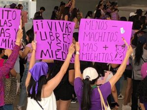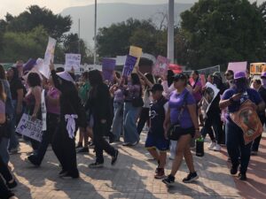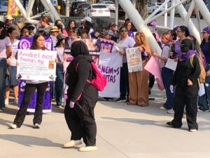 Las participantes señalaron que el objetivo de la protesta es visibilizar la lucha por los derechos de las mujeres y exigir justicia en los casos de violencia de género, feminicidios y desapariciones.