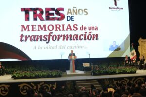 En su mensaje, el gobernador destacó que esta rendición de cuentas coincide también con el primer aniversario del inicio de una nueva etapa de la transformación nacional con la primera presidenta de México, Claudia Sheinbaum Pardo, a quien reiteró todo el apoyo y el orgullo de las y los tamaulipecos.