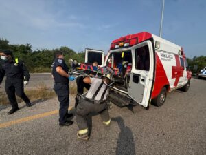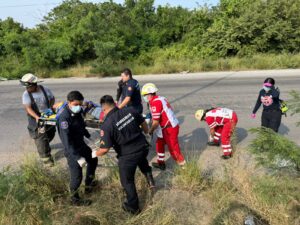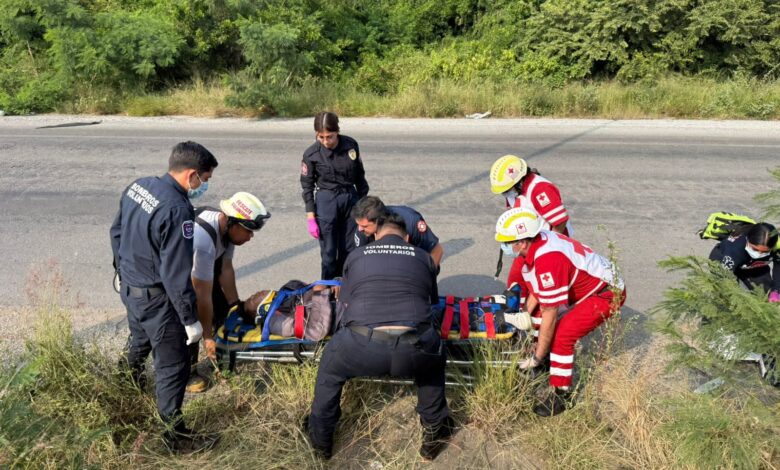 Brigadistas de la base Bomberos vñVoluntarios de Tamaulipas se sumaron a las acciones y apoyaron a la benemérita institución para que el herido fuera trasladado de urgencia a un hospital, en tanto del percance tomaron conocimiento elementos de tránsito estatal.