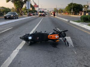 Motociclista sin casco choca, derrapa más de 40 metros y termina herido en Ciudad Victoria