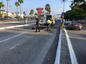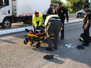 De acuerdo con los reportes, el hombre, de aproximadamente 35 años, circulaba entre los autos cuando impactó un vehículo marca BYD, perdió el control y cayó al suelo.
