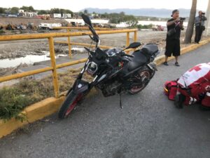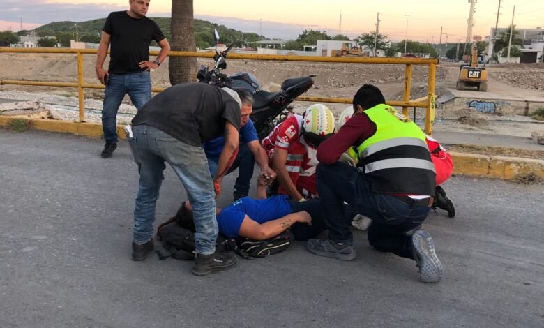Pareja resulta lesionada tras derrapar en motocicleta en el bulevar Práxedis Balboa