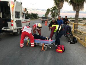 Ciudad Victoria, Tamaulipas.– Una pareja que viajaba a bordo de una motocicleta resultó lesionada luego de derrapar sobre el bulevar Práxedis Balboa, a la altura de la colonia La Moderna, presuntamente tras ser cerrada por una camioneta.