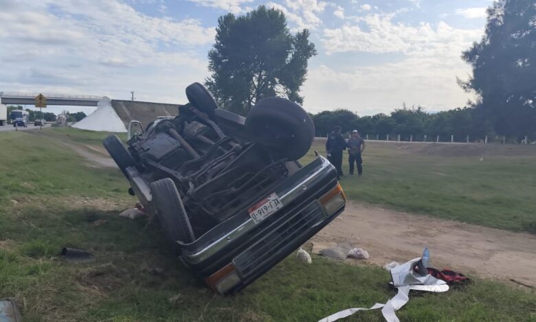 Ciudad Victoria, Tamaulipas.– La ponchadura de una llanta provocó la volcadura de una camioneta, dejando como saldo cuatro personas lesionadas, integrantes de una familia que viajaba de Matamoros con destino a Ciudad Mante.