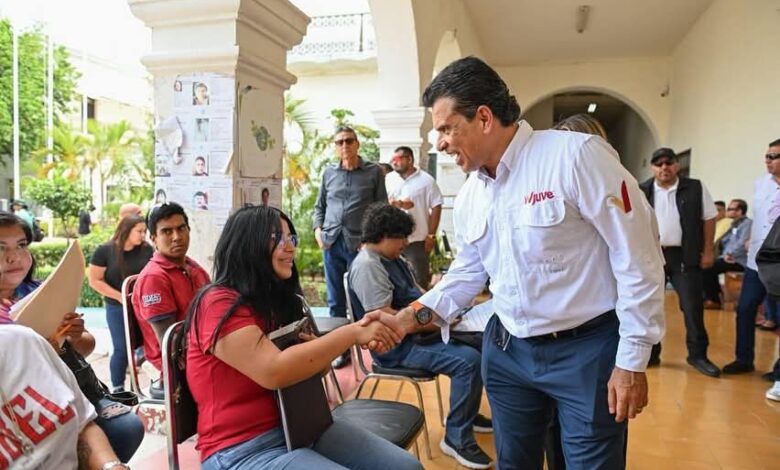 El alcalde Eduardo Gattás Báez, junto a su esposa Lucy de Gattás, visitó los módulos de contratación para agradecer a las empresas participantes la oportunidad de insercion laboral que ofrecen al ciudadano y el impulso a la economía de la Capital del Estado.