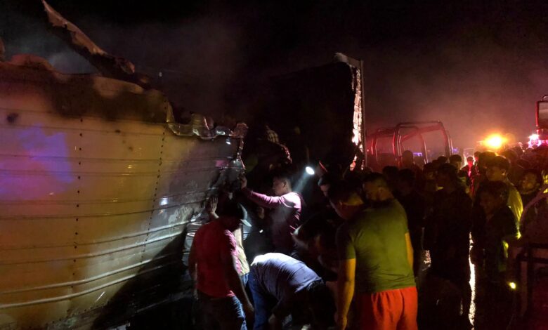 Rapiñan piernas de cerdo tras incendio de tráiler cerca de Victoria