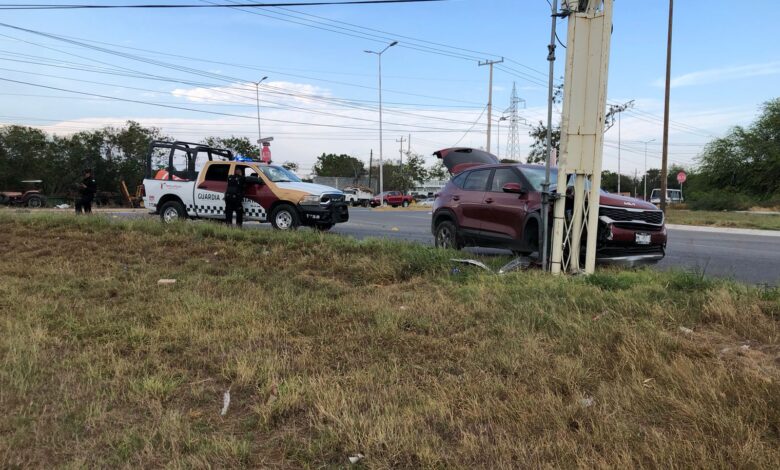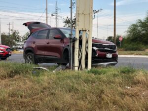 Ciudad Victoria, Tamaulipas.- Una camioneta Kia en la que viajaba una familia integrada por una mujer, una menor de edad, un joven y un hombre adulto, se impactó contra un poste con cables de alta tensión luego de que el conductor presuntamente perdiera el control tras dar un volantazo.