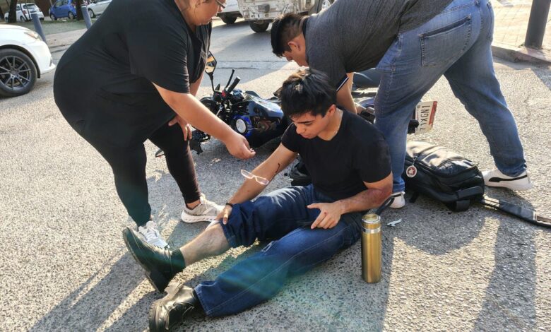 Se paso alto y tumba a motociclista en el 17 Ocampo