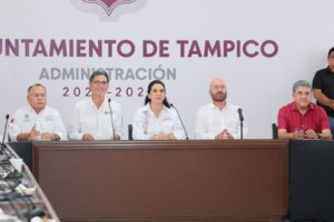 La reunión del Consejo Estatal de Protección Civil se realizó en Tampico y contó con la participación del Ing. Raúl Quiroga Álvarez, Secretario de Recursos Hidráulicos para el Desarrollo Social; la Lic. Mónica Villarreal Anaya, alcaldesa de Tampico; y Armando Martínez Manríquez, alcalde de Altamira, además de autoridades estatales y federales en materia de protección civil.