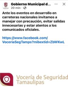 Desde poco antes del mediodía, a través de redes sociales, ciudadanos comenzaron a alertar sobre el bloqueo de la carretera San Fernando–Reynosa, a la altura de la conocida curva de “Los Indios”, a escasos kilómetros del punto denominado “La Y”.
