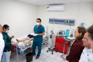 Hernández Campos, presenció la atención que se le otorgó al paciente, Jesús Baldemar Guerra, de 54 años y originario de Allende, Nuevo León, quien presentaba una herida en un dedo. Conversó con el señor Arturo Casados Estrada de 76 años, el cual fue atendido por caída de caballo, se le realizarán estudios y atención médica especializada.