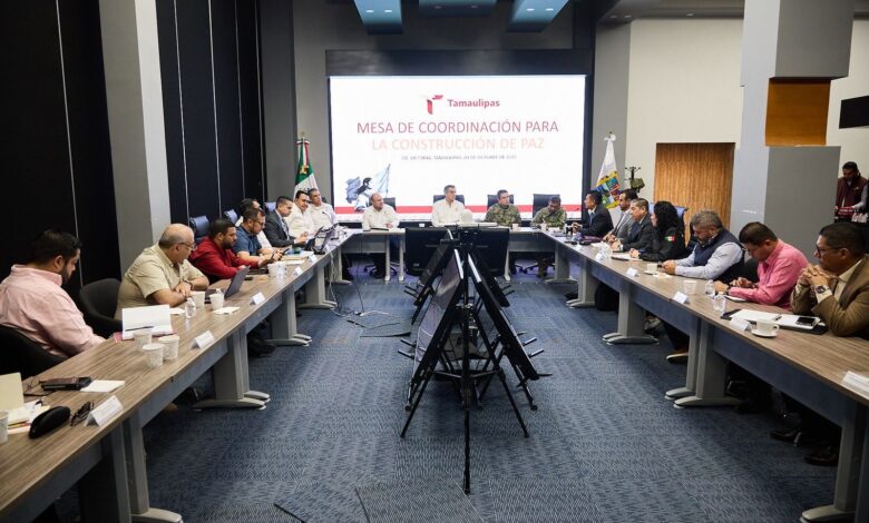 Ciudad Victoria, Tamaulipas, octubre 03. – Durante la reunión de la Mesa de Coordinación para la Construcción de la Paz, el maestro Alfredo Almora García, director general de Atención a Víctimas de Secuestro y Extorsión de la Secretaría de Seguridad y Protección Ciudadana, SSPC, presentó la Estrategia Nacional contra la Extorsión impulsada por la presidenta Claudia Sheinbaum.