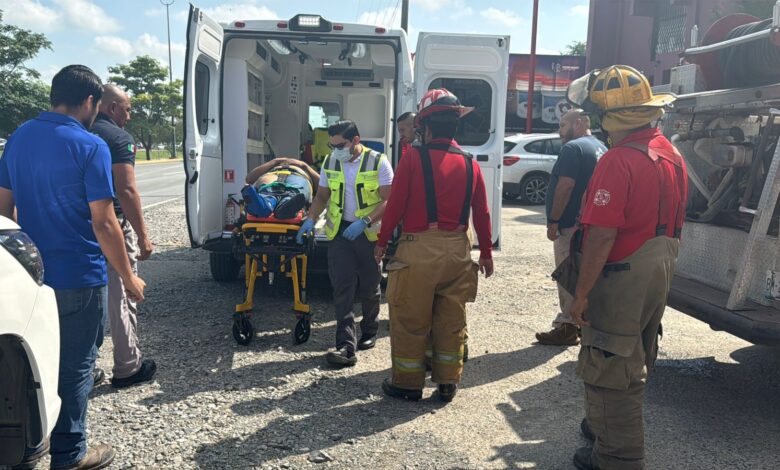 Elementos del Centro Regulador de Urgencias Médicas (CRUM) y Bomberos de Victoria acudieron de inmediato al lugar para liberar al trabajador, quien presentaba lesiones en piernas, brazos y zona cervical.