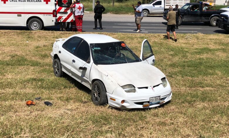 Traían puro chile: Vuelcan auto en el Libramiento Naciones Unidas