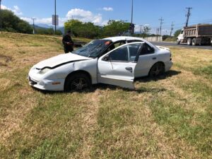 El automóvil, un Pontiac blanco, circulaba en dirección de poniente a oriente cuando el conductor perdió el control y salió de la cinta asfáltica, dando varias volteretas hasta quedar finalmente en posición normal en el camellón central.