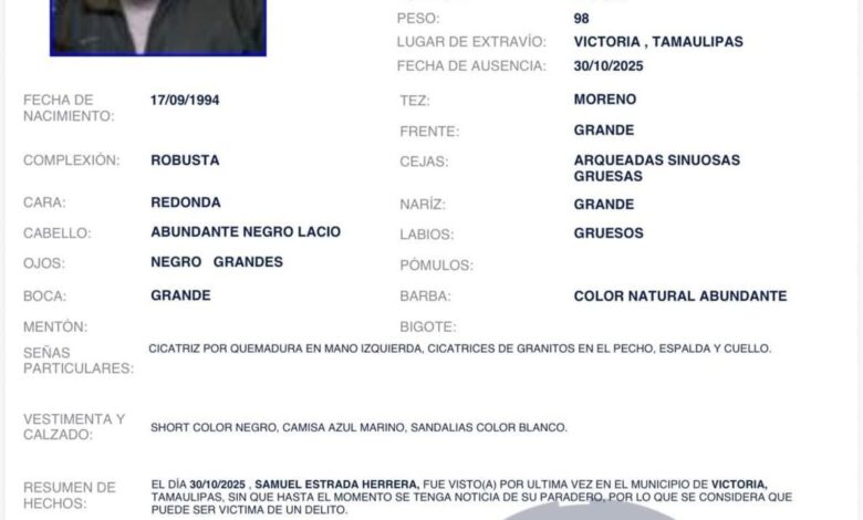 Hasta el momento, la FGJE mantiene activo el operativo de búsqueda, mientras agentes investigadores realizan labores de rastreo en distintos puntos de la capital tamaulipeca.
